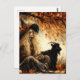 Witch With Coffee and Her Pet Black Goat in Autumn Postcard