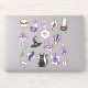 A witchy black and purple sticker set for the witchcore aesthetic. This witchcore sticker sheet has 17 black and purple stickers in the witchcore aesthetic including a crystal ball with bat, magic potion, skull, dried herbs and feathers, witch's broom, eye, feathers, snake, mushroom, raven, black cat, moth, crystal, witch's hat, and candle.