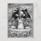 This vintage art purports to illistrate a witches gathering with the Devil. You have a giant nasty winged, horned goat thing aka " the Devil " sitting atop a stone spire with spirits and witches circling upon broomsticks. Most if not all claims of witchcraft and devil worship from the medeval period are today thought to be fabrications of superstitious people and church propaganda of the time. Regardless the art here is evokative of the periods belief. this vintage black and white rendition is by Frank C Pape.