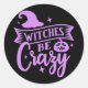 Witches Be Crazy Black and Purple Classic Round Sticker