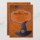 A black spider's web is the background for this Halloween invitation featuring a witches hat and a decorative label for your party's information.The card is easy to customize with your wording, font, font color, paper shape options and choice of six paper types.