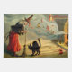 A fantastic vintage Halloween kitchen towel featuring a witch "at work".