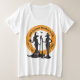 Create some swag for your town's Witches Walk or other Halloween fund-raising event . Created with two modern elegant witches with brooms on a logo style circle background with editable text. Lots of shirt styles and sizes to choose from. Black and orange, looks best on light colors. See also a white design on dark colors.