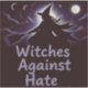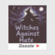 This sticker features a whimsigoth inspired oil painted print in purple white black with the words Witches Against Hate.