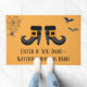 Invite a touch of Halloween enchantment to your doorstep with our Witching Hour Doormat! Featuring whimsical witch boots, fluttering bats, and a curious spider, this doormat sets the scene for a bewitching Halloween. The bold message, 'Enter if You Dare—Witching Hour is Here!' adds a thrilling touch, making it clear that your home is ready for some spooky fun. Perfect for adding a hint of mystery and excitement, this doormat ensures every guest is prepared for an evening of magical mischief!