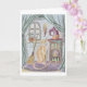 Send seasonal greetings with this unique Halloween themed card! Card features a hand drawn illustration of a witch's cozy cottage, where her cat guards her broomstick and shelf of spell books until her return. This card is perfect for sending Halloween greetings or invitations to a spooky party!
