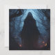 A mysterious woman in black appears to be made of twigs in a haunted forest on this beautiful and spooky Halloween card.