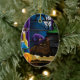 Witchy Brown Cat Magic Purple Full Moon Brewing Ceramic Ornament
