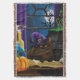 A cozy yet mysterious fantasy painting featuring a brown cat dressed in a purple witch’s hat, resting atop an open spell book as potions bubble nearby. Set beneath a glowing full moon and framed by rich purple curtains, this enchanting scene blends feline charm with classic witchcraft imagery. Perfect for Halloween lovers, witchy decor fans, and cat enthusiasts, this artwork adds magical warmth with a whimsical spooky aesthetic