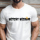 Halloween T-shirt featuring an orange hat design and black typography, prominently displaying the phrase "Witchy Wisdom". This festive T-shirt is perfect for Halloween, showcasing a design with an orange hat graphic and the words "Witchy Wisdom" in bold black typography.