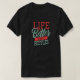 My 11 yo wore adult XL (5’7” 165#). The 8yo is small framed. She wore adult small and tied it in the back. Grandma wore adult large with long sleeve shirt underneath. Tall girl adult medium. Dark haired male adult large. Good quality dark Heather gray, Gildan brand shirt. -it was next up from basic choice and cost about $20 per shirt. Not too thick or thin. Washed and dried well, no major shrinkage. Not see-through. Can wear a bra under it fine. Screen print is just as shown and well done, front and back.