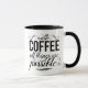 Can't bear the thought of going through your day without coffee? Neither can we. Our funny typography quote mug features "With Coffee All Things Are Possible" in black and white block and script typography lettering.