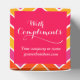 Give a taster professionally to customers with this bright chevron style pink, red, orange, yellow and white with compliments gift or treat gift box. Ideal for corporate gifts for clients or employees. Could also be used for promotions or loyal or potential new customers filled with your food samples. Customize with your companies contact details. Currently reads with compliments pâtisserie delights followed by phone number or your website. Designed by Sarah Trett.