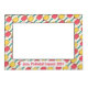 Introducing the “Diagonal Ace” magnetic picture frame! This frame is a pickleball lover’s dream, featuring a dynamic pattern of diagonal pickleball paddles in vibrant yellow with red stripes and pink with light blue stripes. The paddles are interspersed with yellow pickleballs, creating a lively and energetic design. The large white rectangle in the center is perfect for displaying your favorite pickleball moments, whether it’s a victorious shot or a funny mishap on the court. And at the bottom, you can add your own custom text – like “Jane, Pickleball Legend, 2024” – to make it uniquely yours. This frame isn’t just a way to display photos; it’s a celebration of your love for pickleball in a fun and colorful way!