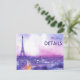 From the Amour Éternel à la Parisienne collection, this elegant enclosure card blends poetic charm with practical grace. The front features the couple’s names in a refined mix of script and serif fonts, set against a dreamy watercolor Paris skyline. The Eiffel Tower rises above softly lit rooftops, bathed in romantic hues of lavender, blush, and moonlight.
