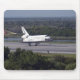 With drag chute unfurled, space shuttle Discovery lands on Runway 33 at the Shuttle Landing Facility at Kennedy Space Center in Florida featured with Cape Canaveral.