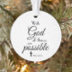 This Christian ornament has a small black cross and the bible verse (Matthew 19:26): With God all things are possible.
