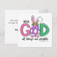 We all need hope and support from time to time. This "With God All Things Are Possible Easter Card" is an inspirational design for anyone, whether you're looking for Christian greeting cards or other types of Easter greeting cards. You don't have to be religious to receive the benefits from faith greeting cards. This item features Easter, bunny, as well as God for this greeting card.