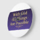 "Keep your faith close and your time inspired with this beautifully designed wall clock. Featuring the uplifting message '"With God All Things Are Possibe,' this clock serves as a daily reminder of hope, perseverance, and divine guidance. Perfect for your home, office, or as a thoughtful gift for loved ones, it blends functionality with faith-based inspiration."