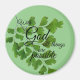 3 inch round magnet "With God All Things Are Possible" foliage on green background