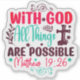The words are in a bold, decorative font with floral flourishes, a cross, and stars.: bible verse, bible quote, scripture, Matthew 19.26