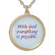 I chose gold plated so that the metal would not react with my skin oils and perspiration. But, I changed the necklace from the gold plated one to a sterling silver. My skin cells will tarnish the silver. But it will not look as bad if some portion of the gold plated necklace somehow became compromised. Zazzle did a find job turning the picture into a pendant for me. As you can see, the colors and the printing of the final product, match the preview. The picture I took is not very clear. But I am pleased with the product I received.