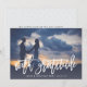 A modern wedding thank you card designed to accommodate your favorite full-bleed horizontal or landscape oriented wedding photo. "With gratitude" appears at the bottom as a white text overlay in handwritten style brush lettering, with your names and wedding date beneath. Add an optional message to the subtly patterned back using the field provided, or delete the sample text to add your own handwritten message of thanks.