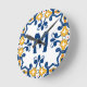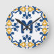 With initial 💛 💙blue and yellow Azulejos Round Clock
