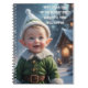 This adorable notebook features a charming baby elf in a winter wonderland setting. It’s perfect for inspiring creativity & holiday cheer. With the whimsical phrase "With just a dash of the holiday spirit, wonderful things will happen!," This notebook is sure to brighten your day & spark your imagination.