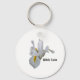 This is a key ring with a white Iris and a yellow centre. With the words With Love inscribed.