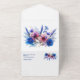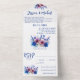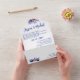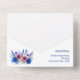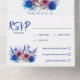 A tear-away RSVP card, adorned with a matching cornflower and lavender design, is nestled at the bottom of the invitation suite. This thoughtful addition not only facilitates prompt responses from guests but also includes menu options for them to choose from, adding a personalized touch to the celebration. The pre-addressed card ensures a hassle-free response, and a perforated edge guarantees a clean tear. The RSVP card is meticulously designed for easy mailing, streamlining the RSVP process for both hosts and guests alike.