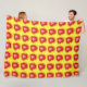 Modern abstract shiny red hearts on a yellow background.