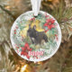 Imagine honoring your beloved pet with this exquisite memorial ornament. Featuring a custom photo in the center, this round ornament is framed by a beautiful border of green leaves, red berries, and vibrant red flowers. The illustration of a black French Bulldog, set against a radiant yellow to white gradient background, captures the essence of your furry friend.
