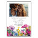 Turning over to the back, a couple's photo takes center stage at the top of the card, surrounded by their names, wedding date, and location. This personalized feature adds a sentimental touch, allowing guests to feel a deeper connection to the couple and their love story. Against a clean white background, the details stand out with clarity, ensuring easy readability.