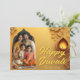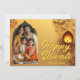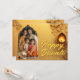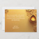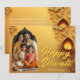 Front Side: On the left, your custom photo is framed in a graceful arch with golden borders—evoking the warmth of temple architecture and the intimacy of family celebration. The portrait radiates joy, tradition, and closeness, perfectly capturing the heart of Diwali. On the right, a golden background blooms with floral and leaf motifs, anchored by a glowing diya that symbolizes light, hope, and renewal. “Happy Diwali” floats above in elegant cursive, with your family name nestled below in a clean, timeless font.