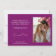 Flipping to the back, a soothing purple background provides an elegant contrast. On the right side, a cherished photo of the couple takes center stage, capturing a moment of joy and connection. On the left, a spacious area awaits customization, allowing the couple to share a personal message or details. An additional line is dedicated to the wedding website address, providing a modern touch for guests to access more information or can be omitted for simplicity. This horizontal design ensures a seamless and visually striking Save the Date card within the "Fuchsia Enchantment: Watercolor Wedding Suite," inviting loved ones to mark their calendars for a celebration filled with botanical beauty and love.