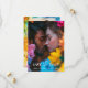 On the back, a second photo of the couple is featured, set against a backdrop of the enchanting "Ethereal Bloom" artwork, which gracefully swirls in rich hues of blues, purples, reds, oranges, and greens. Below the photo, there is ample space for personalized text, allowing for additional details or a heartfelt message. The artwork subtly enhances the background, creating a cohesive and stylish frame that complements the couple’s images.