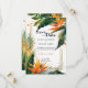 The Birds of Paradise Bliss Save the Date card is a captivating glimpse into the enchanting celebration to come. On the front, the card features a clean and elegant design, showcasing the names of the couple, the significant date, and the beautiful location where the festivities will unfold. The backdrop is adorned with the tropical allure of bird of paradise flowers, lush green leaves, and delicate straight lines, creating a visually stunning and harmonious ensemble.