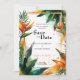 Turning to the back of the card, a customizable text space is provided, inviting guests to scan a QR code for access to the wedding website. This interactive element allows guests to explore additional information about the celebration, such as venue details, accommodation options, and more. The QR code seamlessly blends technology with the vibrant and tropical ambiance of the Birds of Paradise Bliss collection, offering a modern and engaging experience for recipients.