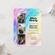A vibrant rainbow‑marble background sets the stage for this bold, modern graduation party invitation, featuring three customizable front‑cover photos that let you showcase the graduate’s personality and proudest moments. All text fields are fully editable, making it easy to personalize names, degrees, dates, and venue details in your own style. The layout stays clean and uncluttered with no extra back text, while an integrated QR code on the reverse provides a fast, convenient RSVP option for guests. A bright, celebratory design that blends color, energy, and customization for a standout graduation announcement.
