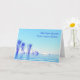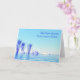 Send your condolences with this elegant and simple sympathy card. A tranquil water scene with blue water and plants.