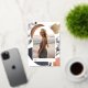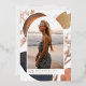 Simple and modern photo graduation announcement features a vertical arched photo on a background of neutral color watercolor shapes and earth tone abstract splotches with rose gold foil accents. Personalize with your grad's name, school, and class year beneath. Add a personal message to the back, along with an additional photo.