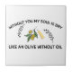 Olive oil is often used to enhance the flavor and texture of food, and in this context, the comparison suggests that the speaker views the person they love as an essential ingredient that adds richness and vitality to their life. By stating that their soul is as dry as an olive without oil, the speaker is expressing the depth of their feelings and emphasizing just how important the other person is to them.