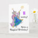 A wizard casting a 'Magical Birthday' spell for an 11-year old. Blank inside for your own message. Handpainted in watercolour and ink by Judy Adamson (helikettle). See also matching T-shirt.