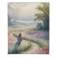 An evocative fantasy watercolor showing a cloaked wizard with a pointed hat and lantern walking alone through a vast, fog-filled valley at dawn. Rolling hills and distant mountains fade into the mist, conveying mystery, adventure, and introspection—great for fantasy lovers, posters, and inspirational prints.