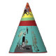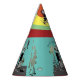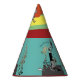 A sweet little party hat designed with classic elements and colors red teal and yellow