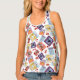 Women's All-Over Print Racerback Tank Top, White Piping, S