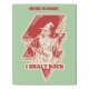 An illustration of a wizard in a lightning bolt playing an electric guitar and a bass. A one man band designed with the text I shalt rock. A design for anyone who loves fantasy or rock music.