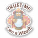 Old wizard with pink cape looking at crystal magic ball. Custom Text