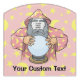 Old wizard with pink cape and crystal magic ball. Use face photo to customize. Custom text.